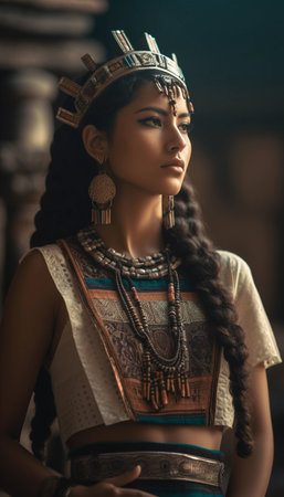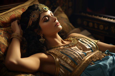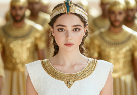 An AI generated illustration of a young woman wearing ancient Egyptian costume