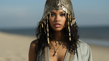 Mysterious Egyptian beauty with ornate headdress