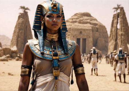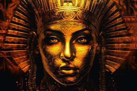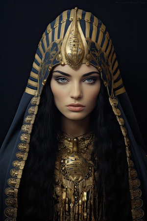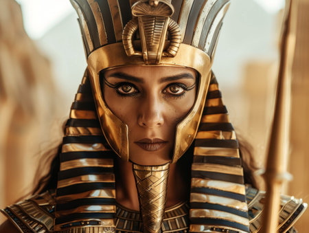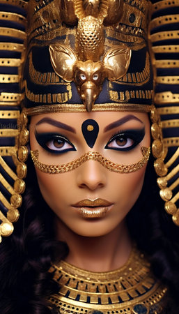 Powerful Egyptian queen in golden headdress
