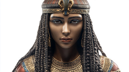 Close-up portrait of a female Egyptian godess isolated on white background