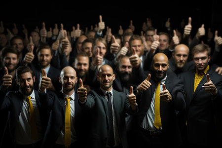 Group of people showing class hand gesture thumbs up, formal people.