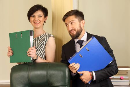 Businessman working together. Portrait of businessman and businesswoman cooperating. Business couple.