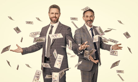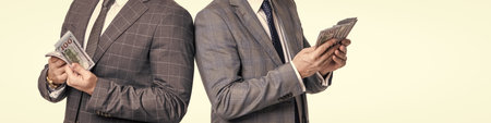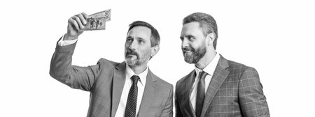 business men get salary in cash. successful businessmen. business success. investment and profit. businessmen holding cash isolated on white. money cash. copy space