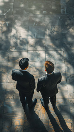 Professional business team walking and having a discussion outdoors