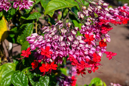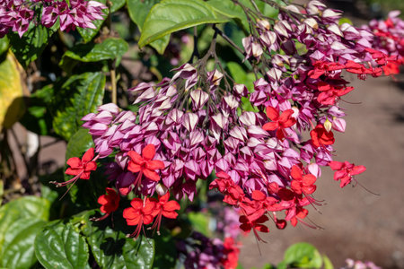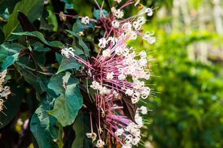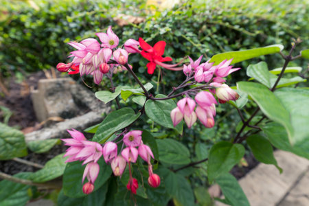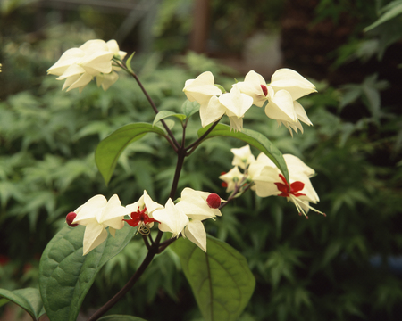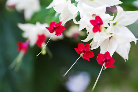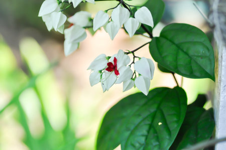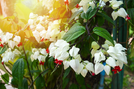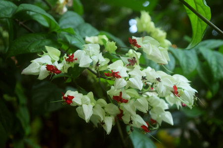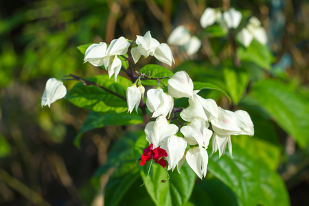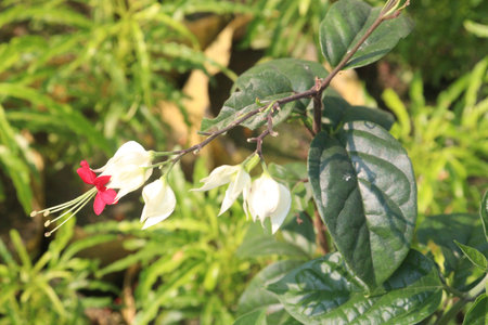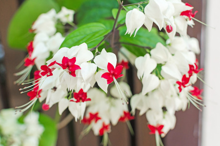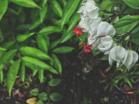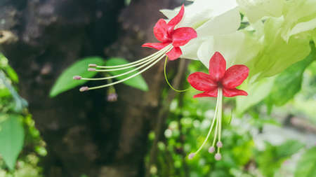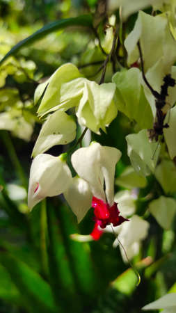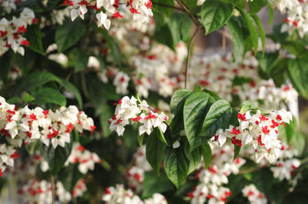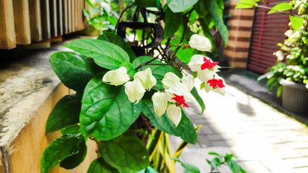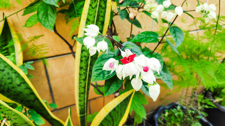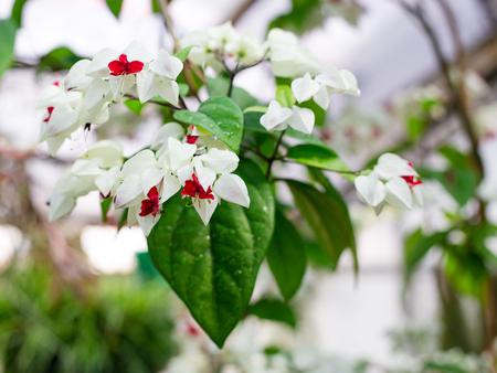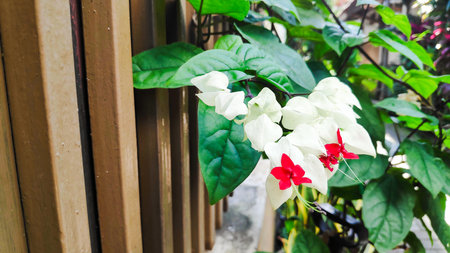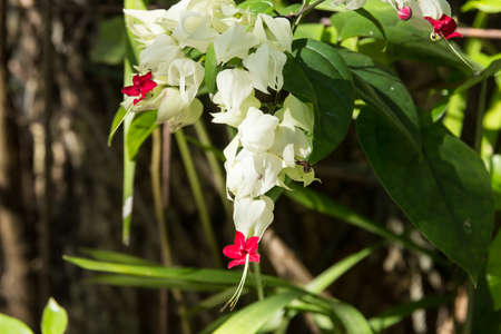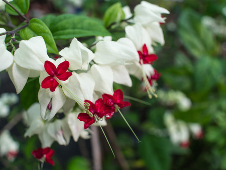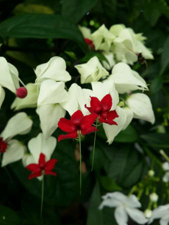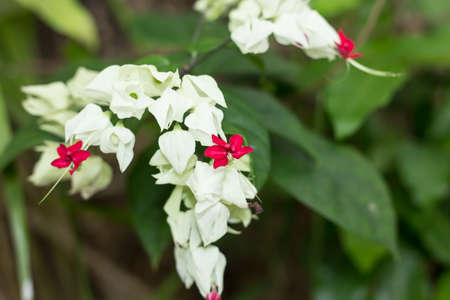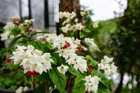 White and red Clerodendrum flowers grow beautifully in home gardens