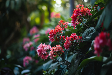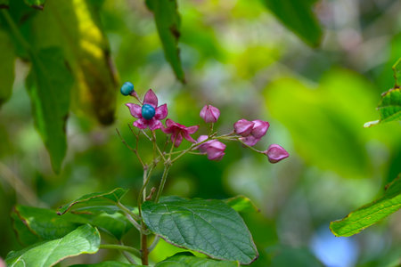 defocus dreamy Bleeding-heart vine or Clerodendrum thomsoniae with dark lush