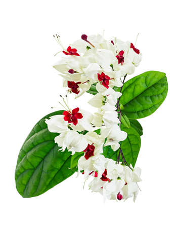 Bleeding glory bower flower, Bleeding heart vine with green leaves, isolated on white background with clipping path