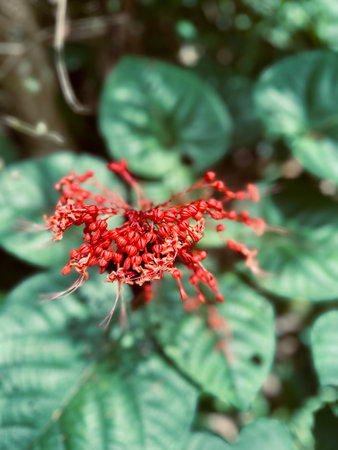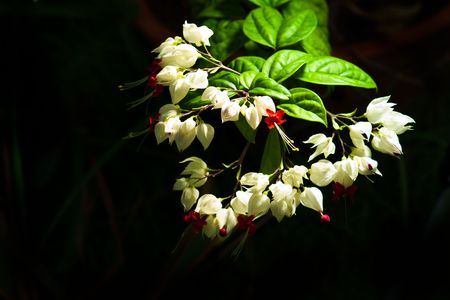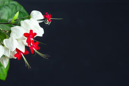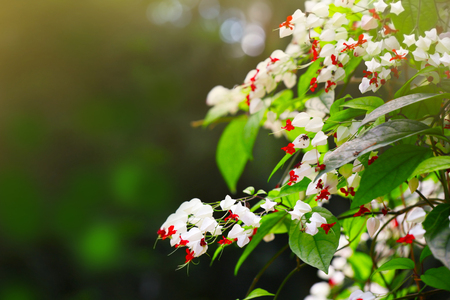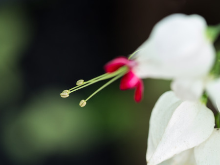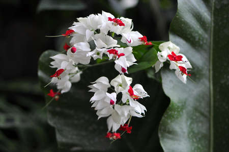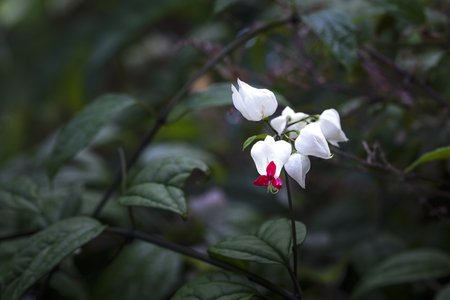 dreamy Bleeding-heart vine or Clerodendrum thomsoniae with green lush and dark ground