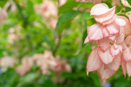 pink flowers in the garden with green leaves background, Thailand.