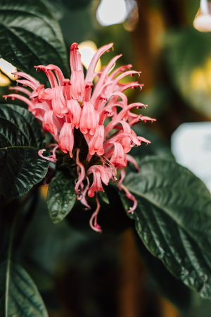 Close up of red exotic flowers in a botanical garden in Indonesia