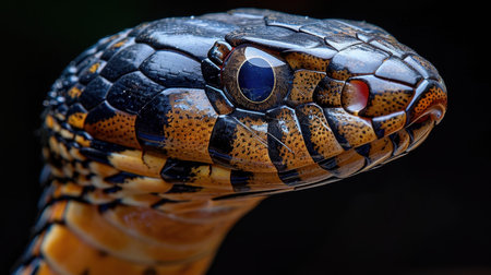 Close-up of snake against black background
