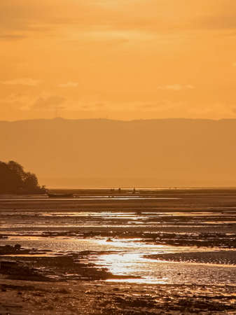 Milford on Sea, UK - July 13, 2019: Couple by the sea at sunset in Milford on Sea, a traditional English village famous for breathtaking cliff top walks with spectacular views and great pebble beaches