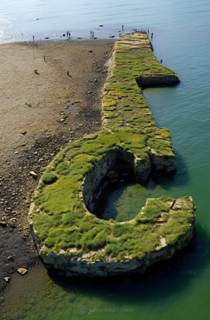 Abstract aerial shot of pier using bird eye perspective made in Christchurch, New Zealand