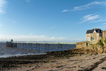 A view of the Clevedon Pier in the town of Clevedon, Somerset, England on the east shore of the Severn Estuary