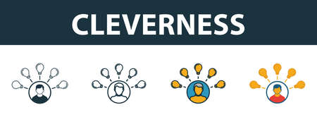 Cleverness icon set. Four elements in diferent styles from project management icons collection. Creative cleverness icons filled, outline, colored and flat symbols.