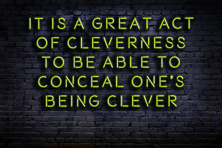 Smart and motivational quotation. Neon sign on brick wall in the darkness