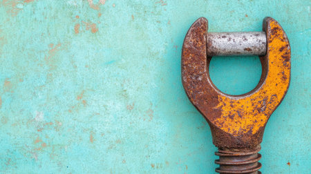 This image features a rusty adjustable wrench against a blue grungy background, ideal for projects associated with repairs, tools, and craftsmanship.