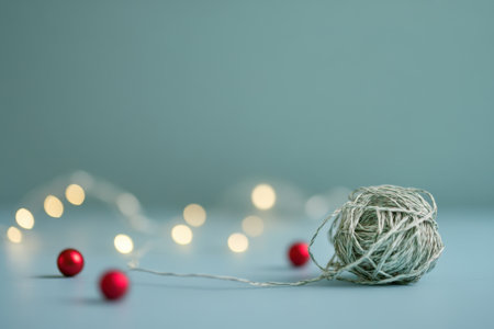 Ball of yarn on aquamarine background