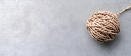 Ball of brown string on a wooden background