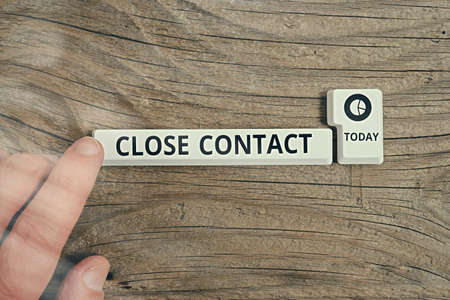 Conceptual hand writing showing Close Contact. Concept meaning having a history of direct exposure to a casepatient Pc keyboard key with note paper above background copy space