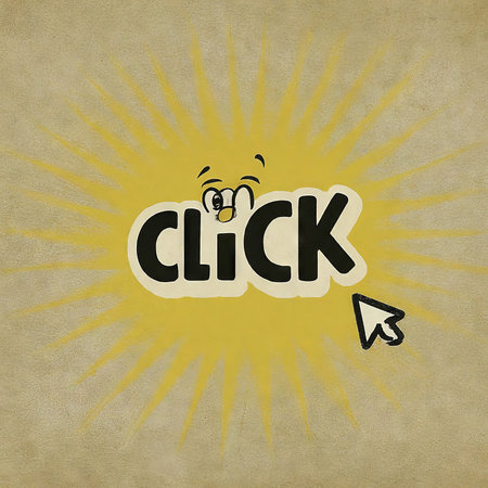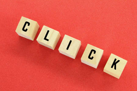 A textured background showcases the word Click in bold red lettering next to a bright yellow arrow pointing right. This inviting design encourages action and engagement in digital spaces.