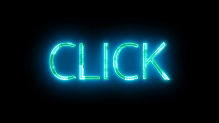 Neon sign with the word CLICK illuminated in blue on a black background.