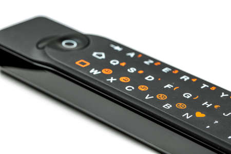 Wireless electronic devices. Closeup of remote control in male hand. Man switching program.