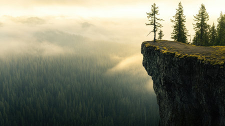 Lone Sentinel A Solitary Tree Stands Guard on a Misty Cliff, Embracing Serenity Above the Ocean