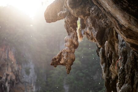 Beautiful tropical limestone islands rock wall boulder cliff texture pattern on Koh Phi Phi Leh island in Ao Nang Amphoe Mueang Krabi Thailand in Southeast Asia.