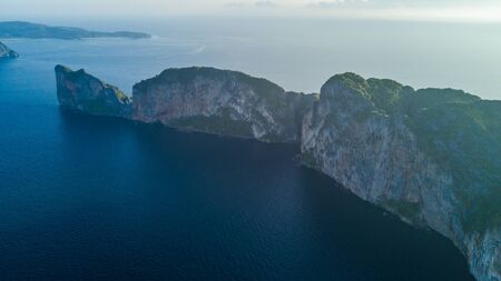 Aerial view. Top view of the peninsula in the middle of the sea, washed by clear turquoise water. Thailand