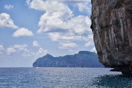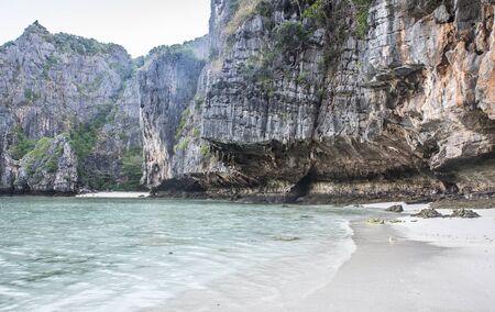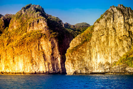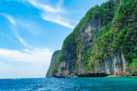 Cliff and the clear sea Phi Phi islands south of Thailand. Phi phi high rocks islands.