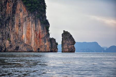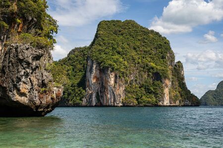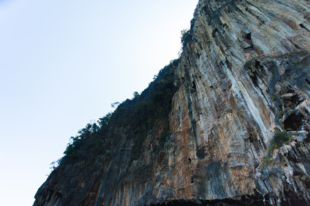 Limestone cliff in Phang Nga bay, Thailand. Landscape photo.