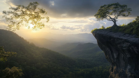Peaceful sunrise over a cliff in Phu Soi Dao National Park.