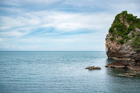 Sea lagoon and green rock in Thailand. Traveling and vacation concept.