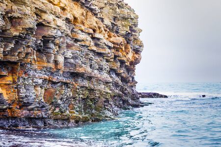 Beautiful seascape with cliffs, sea and cloudy sky.