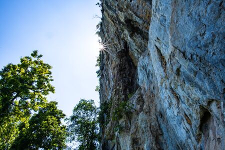 Cliff with blue sky and white clouds. Beautiful natural background.