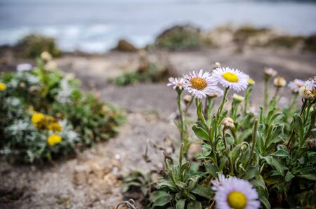 Wildflowers blooming on the coast of Atlantic ocean, Portugal