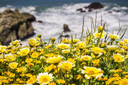 California Coastline with Poppy Flowers in Spring, San Francisco, USA
