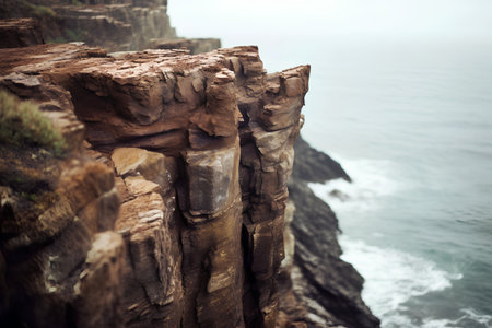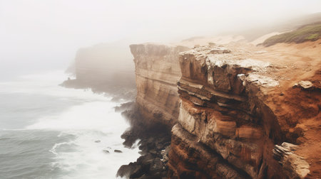 the awe-inspiring beauty of coastal cliffs, as they stand tall and rugged against the crashing waves below. towering cliffs and the power of the ocean, creates a sense of awe and wonder