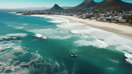Cape Town Beach: Aerial View of Ocean Waves Crashing on Sandy Shore