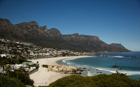 View of Camps Bay Beach and Table Mountain in Cape Town South Africa