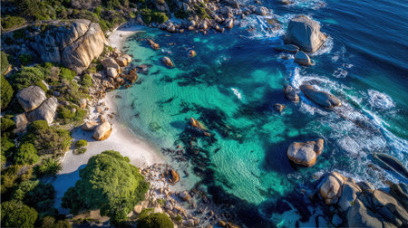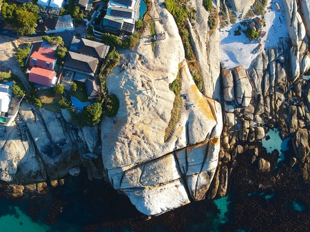 Generative AI : Aerial view of Saunders Rock tidal pool New Years Day summer Cape Town South Africa