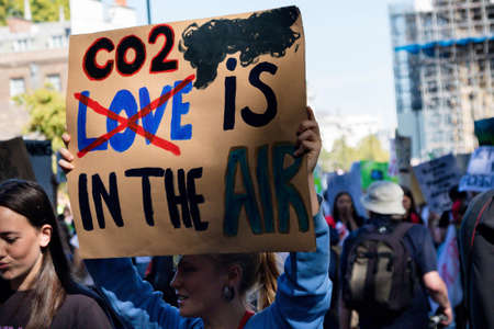 Strasbourg, France - Sep 21, 2019: Walking for climate placard during what could be the largest worldwide climate march change started by Swedish climate activist Greta Thunberg