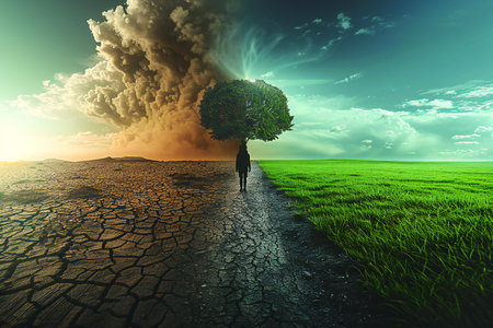 tree in two with very different environments Earth Day or World Environment Day Global Warming and Pollution