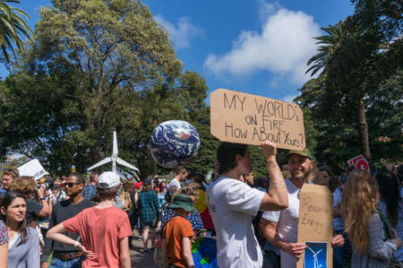 Sydney, Australia - September 20, 2019: Strike for climate change in Sydney. People demanding climate actions from the Australian government.