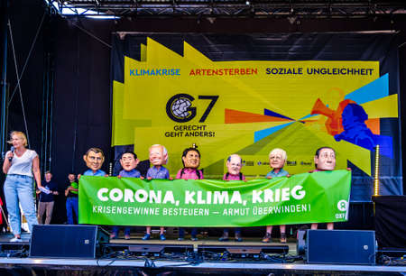 Munich, Germany - June 25: Banners and participants at a demonstration against the G7 meeting in Elmau in Munich on June 25, 2022