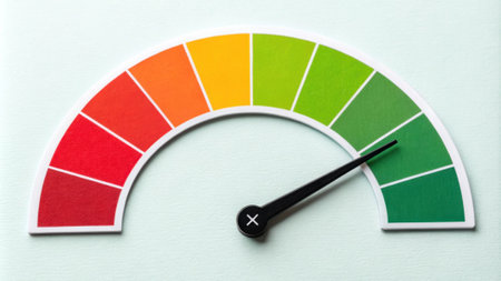 Credit Score Gauge An image of a gauge that ranges from red to green indicating a credit score level with an arrow pointing to the good range..