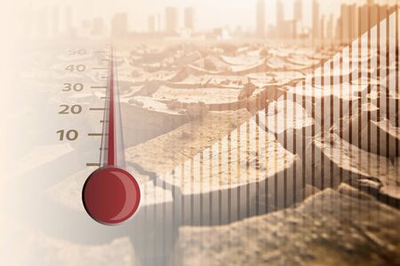Thermometer shows high air temperature. Global warming concept