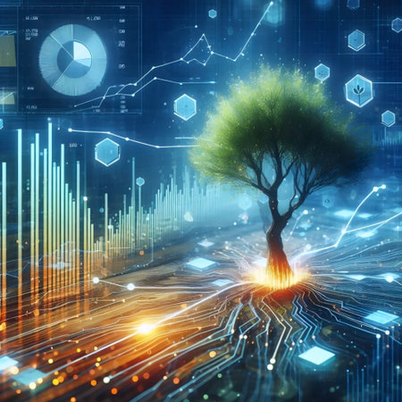 AI analyzing ESG and sustainability metrics for businesses, visualizing carbon reduction goals and environmental performance indicators Parse