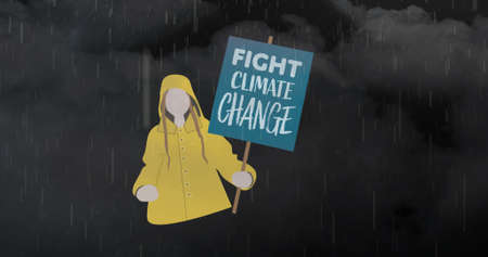 Image of fight climate change text over rain and clouds. global environment, green energy and digital interface concept digitally generated image.